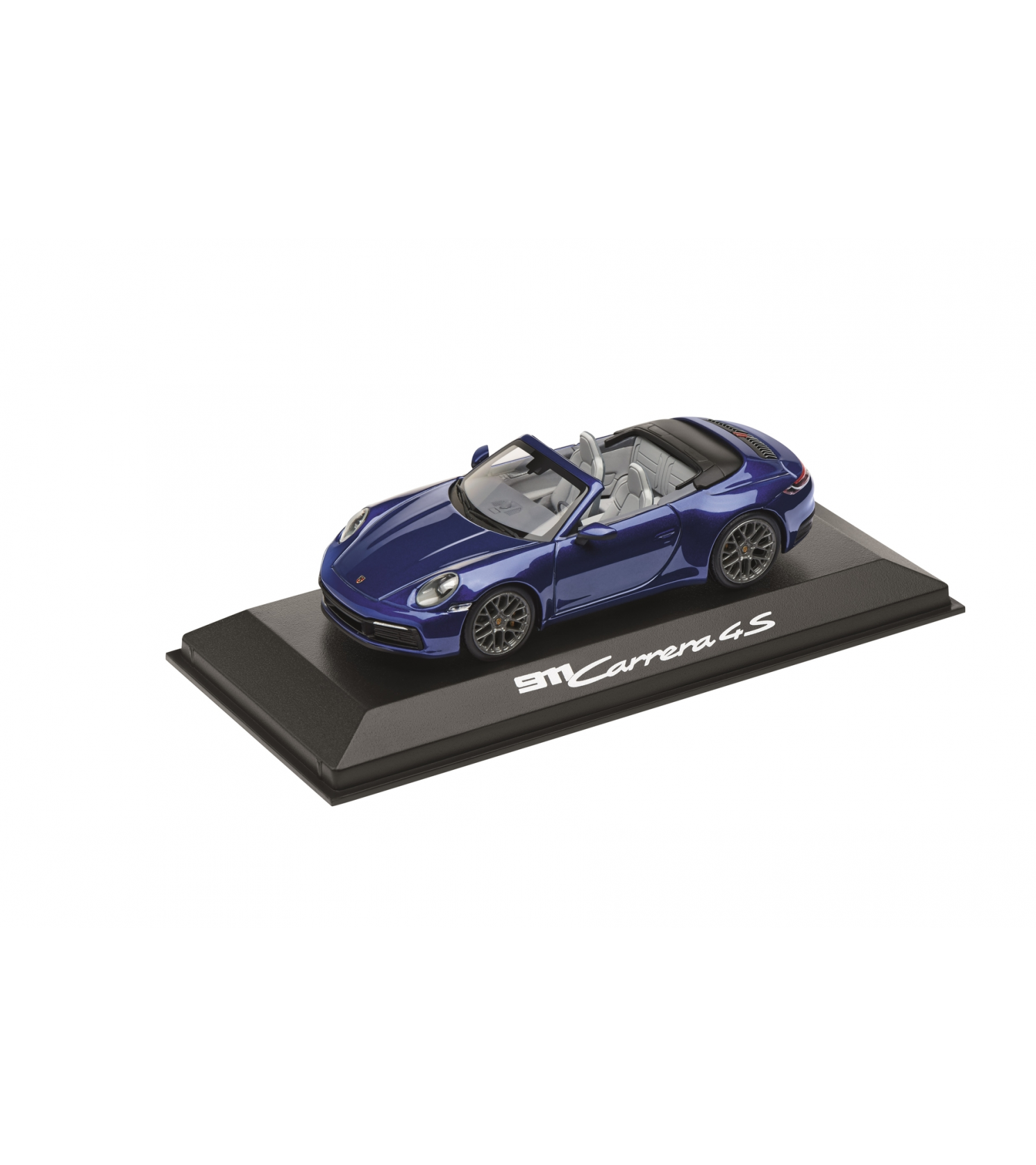 High-quality, detailed collector's model of the 911 Carrera 4S Cabriolet DieCast. In gentian blue. Interior in slate grey/chalk. Top in black. In practical gift box. Scale 1:43. WAP 020 173 0K.