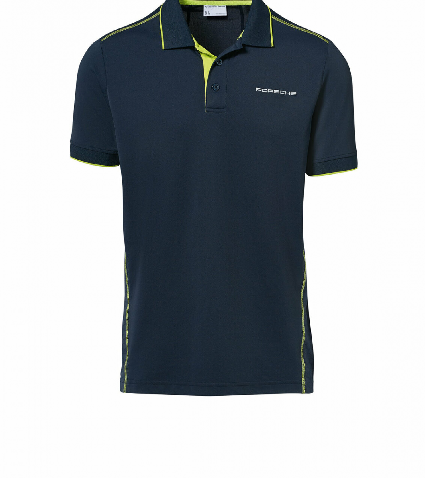 Polo-Shirt made of functional piqué. The elastic and breathable fabric keeps you cool and dry for optimal comfort. Honeycomb print on the back. V-shaped side seams. Flatlock stitching on shoulders and side seam. Panel seam on shoulder blade for an athletic shape. Contrast piping in acid green on sleeves and collar.